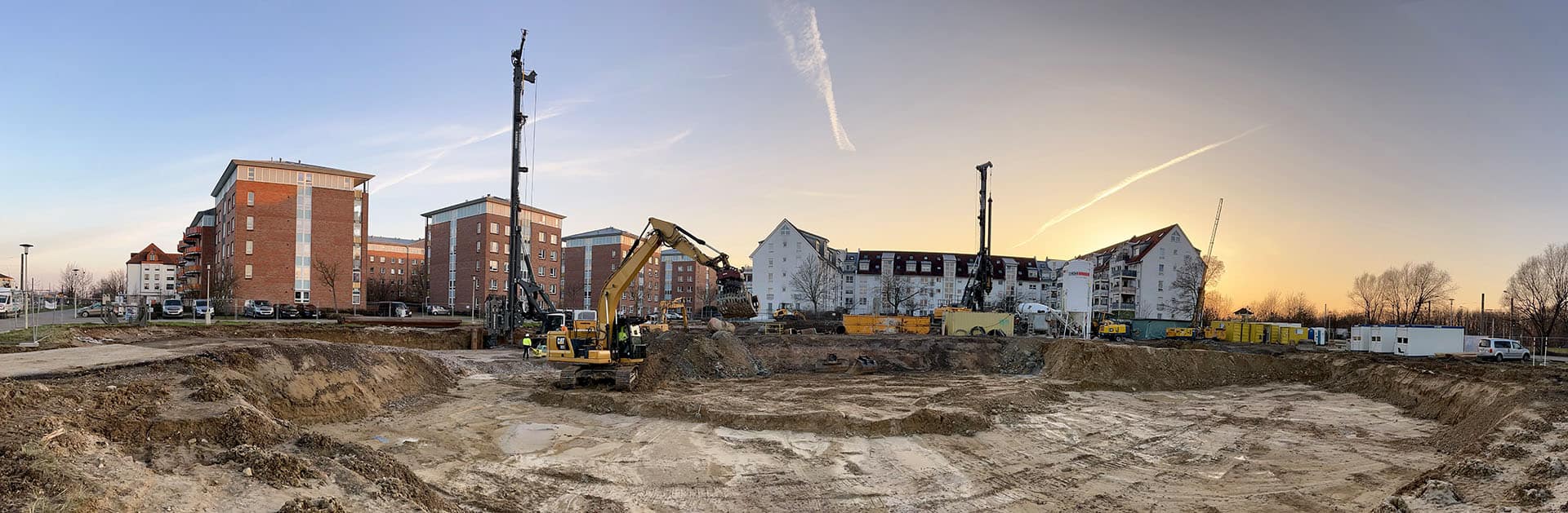 Bohrpfähle sind oft das Mittel der Wahl, um Gebäudegründungen bei schwierigen Bodenverhältnissen zu realisieren.